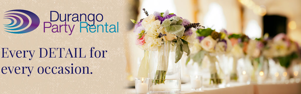 Eco-friendly, sustainable approach: Durango Party Rental is proud to be an eco-friendly, sustainable alternative to traditional disposable party supplies. By choosing reusable glassware, flatware, china and linens we reduce waste.”
